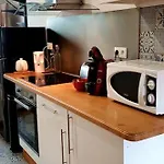 A fully-fitted kitchen is equipped with coffee and tea making equipment, as well as a fridge and an oven for self-catering purposes. Prevolles bus stop lies right off Cosy + Cool Burgundy Apartment.